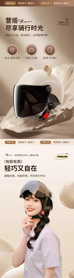 两只小蜜蜂 电动车头盔 产品详情页设计