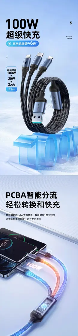 机乐堂充电线三合一数据线 详情页设计