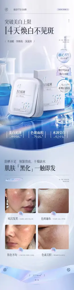 儒意化妆品 377美白补水面膜 详情页设计