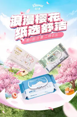 舒洁 家居用品 日用百货 湿纸巾 春天 春季 大促活动海报kv设计