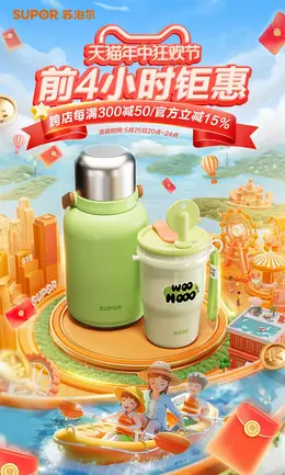 苏泊尔餐饮具 家居用品 日用百货 618大促活动海报kv设计