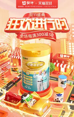 蒙牛 中老年奶粉 食品 双11 双十一 大促活动海报kv设计
