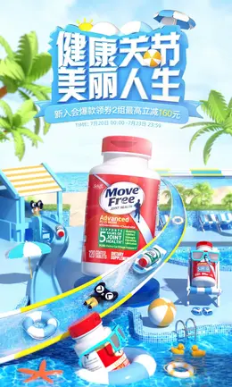MoveFree 保健食品 保健品 夏天 夏季 狂暑季大促活动海报kv设计
