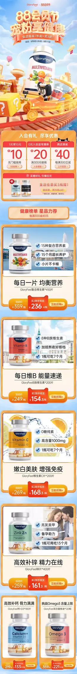 gloryfeel 健康保健食品 保健品 健康医药 88会员节 大促活动首页设计