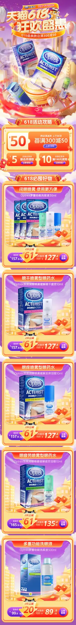 Optrex爱滴氏 眼药水 医药 618年中狂欢节大促活动首页设计