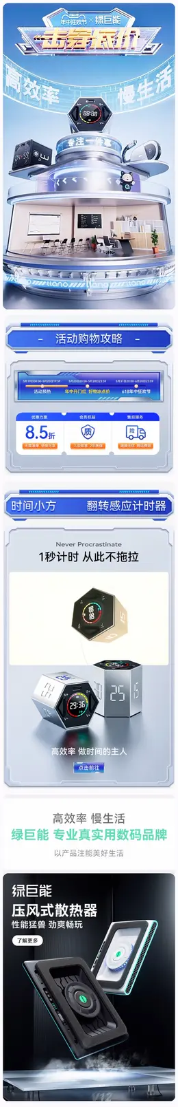 绿巨能 数码科技 充电线 电池 618年中狂欢节大促活动首页设计