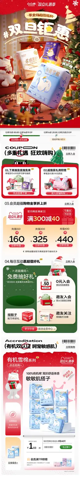 洁婷 日用快消品 纸品 卫生巾 圣诞节 双旦 活动首页设计