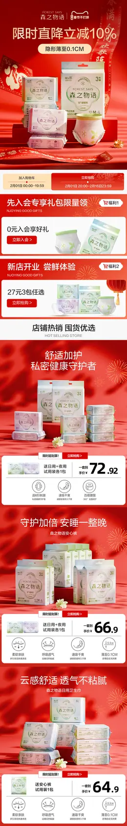 森之物语 卫生巾 安睡裤 新年 年货节 活动首页设计