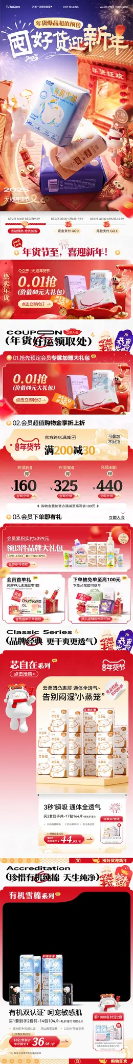 凸凸棉 卫生巾 安睡裤 新年 年货节 活动首页设计