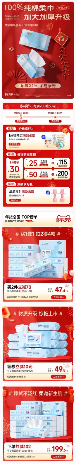 corou可心柔 母婴用品 纸巾 湿巾 新年 年货节 活动首页设计