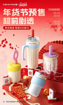万兀 水杯 玻璃杯 保温杯 新年 年货节 活动海报设计