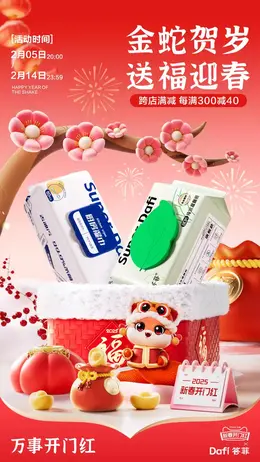 德佑 日用百货 湿纸巾 新春开门红活动海报设计