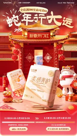 凸凸棉 卫生巾 日用百货 新春开门红海报设计