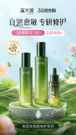 溪木源 美妆 化妆品 38焕新周 活动海报设计