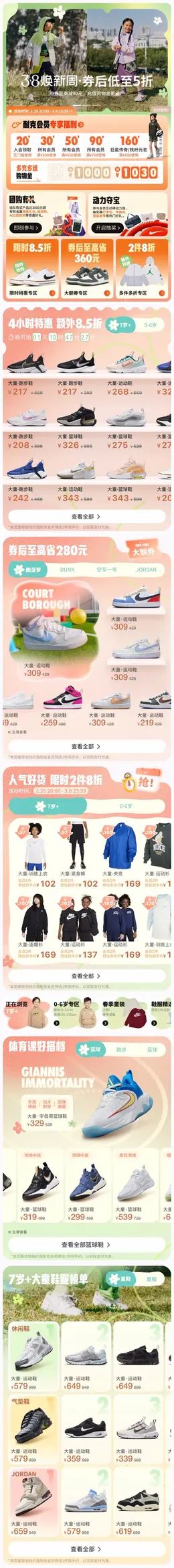 NIKE儿童 运动鞋 运动服饰 38焕新周 女王节 活动首页设计
