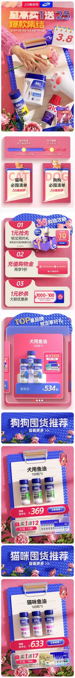 mag 宠物保健食品 猫粮 狗粮 38焕新周 女王节 活动首页设计