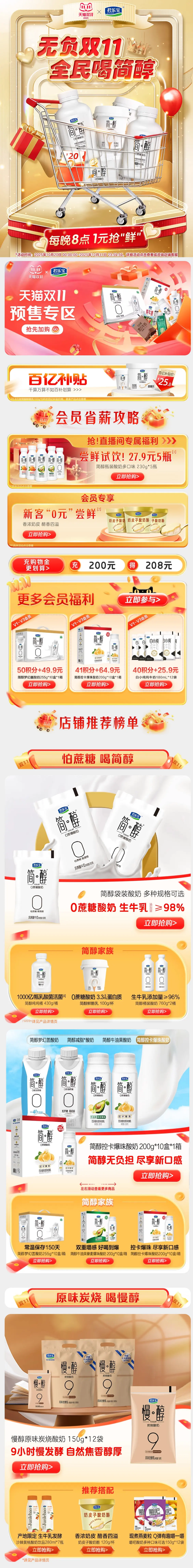 蒙牛 牛奶 奶品 食品 双11 双十一 大促活动首页设计