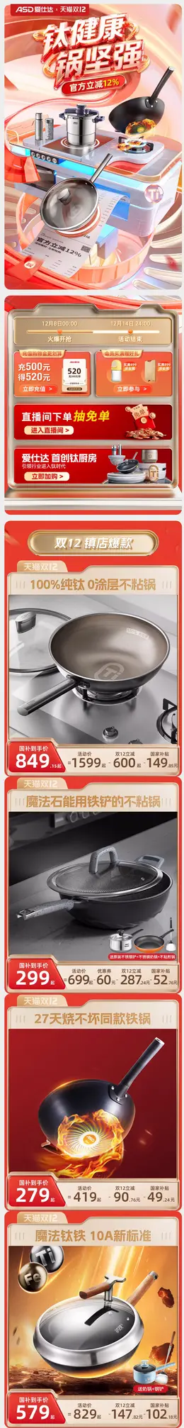 爱仕达厨具 家居用品 日用百货 双12 双十二 大促活动首页设计