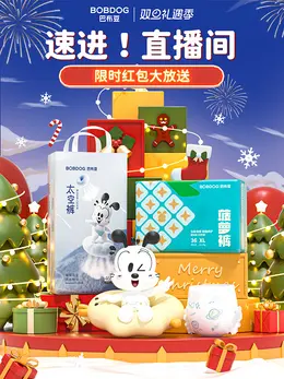 巴布豆 母婴 尿不湿 圣诞节 双旦礼遇季 大促活动海报设计
