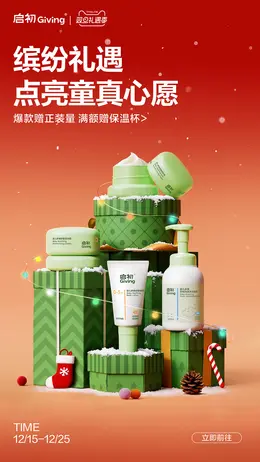 启初 母婴用品 圣诞节 双旦礼遇季 大促活动海报设计