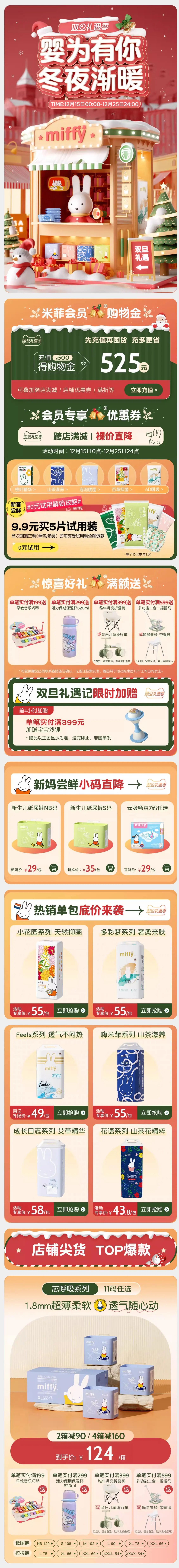 贝亲 母婴用品 奶瓶 圣诞节 双旦礼遇季 大促活动首页设计