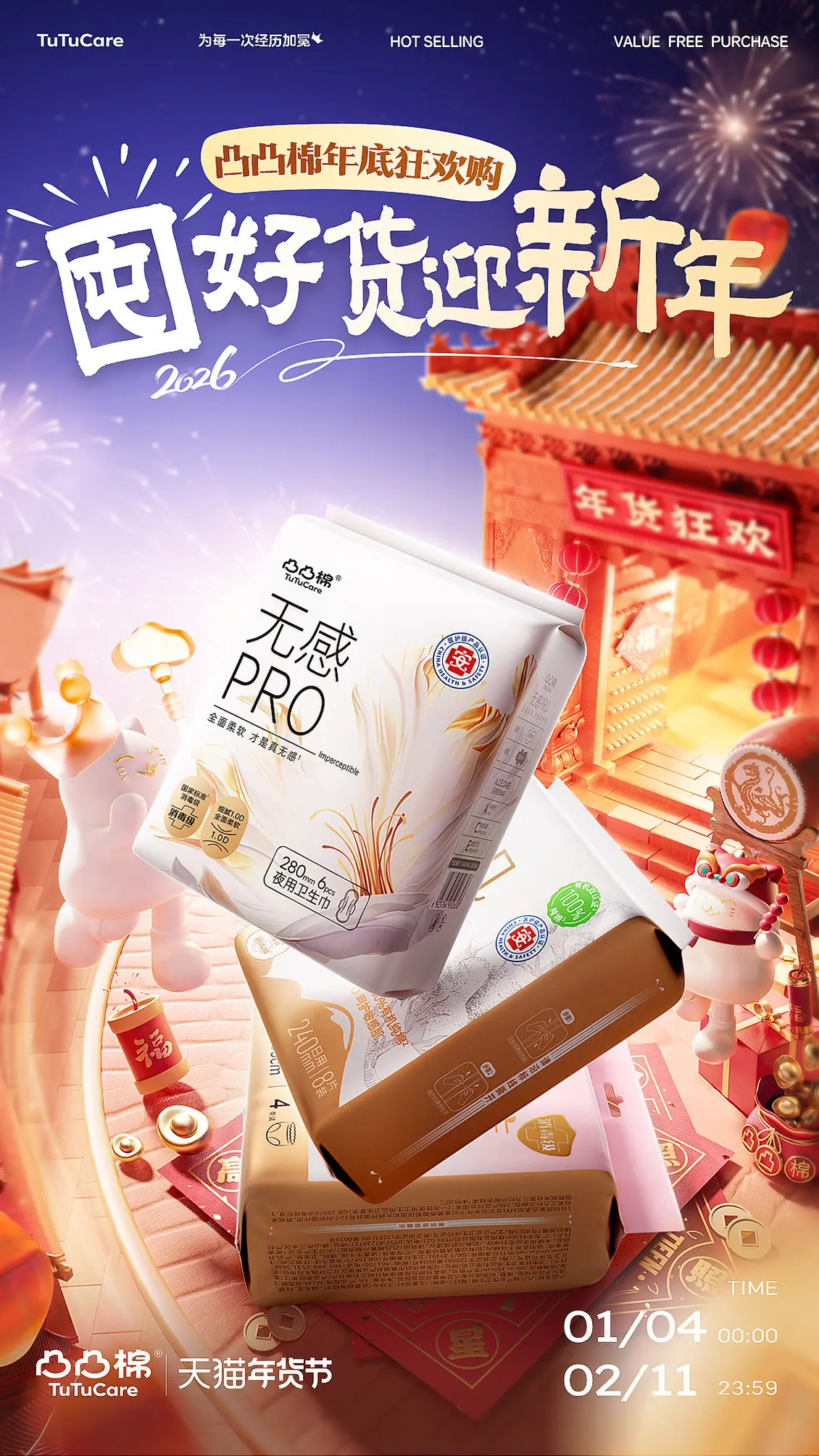 舒莱 卫生巾 安睡裤 新年 年货节 活动海报设计