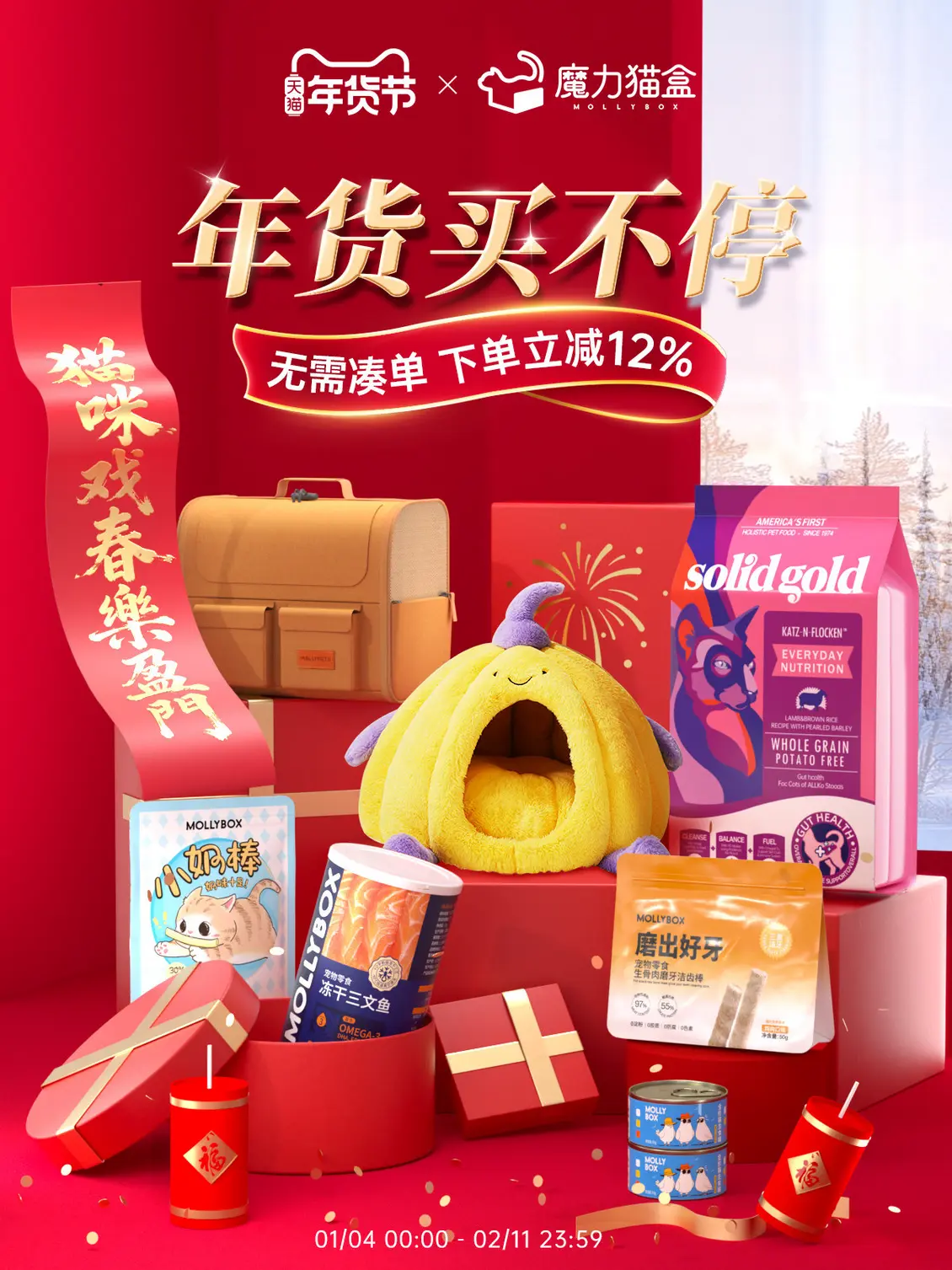 蓝天白云 宠物食品 猫粮 狗粮 新年 年货节 活动海报设计