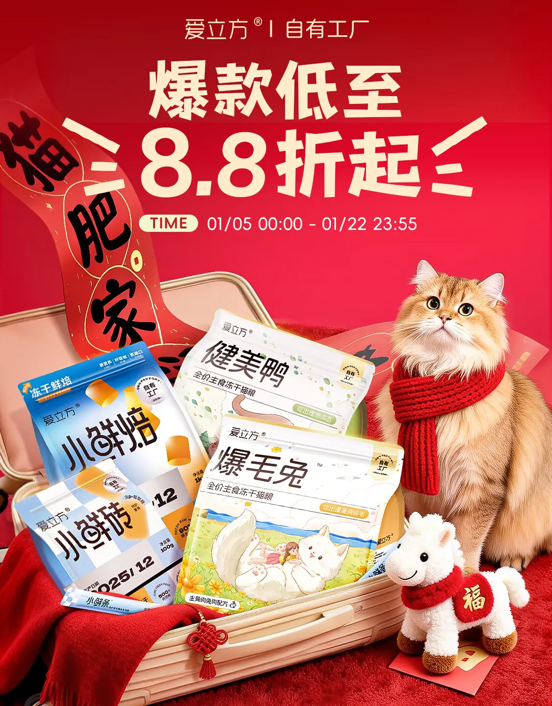 领先 宠物食品 猫粮 狗粮 新年 年货节 活动海报设计