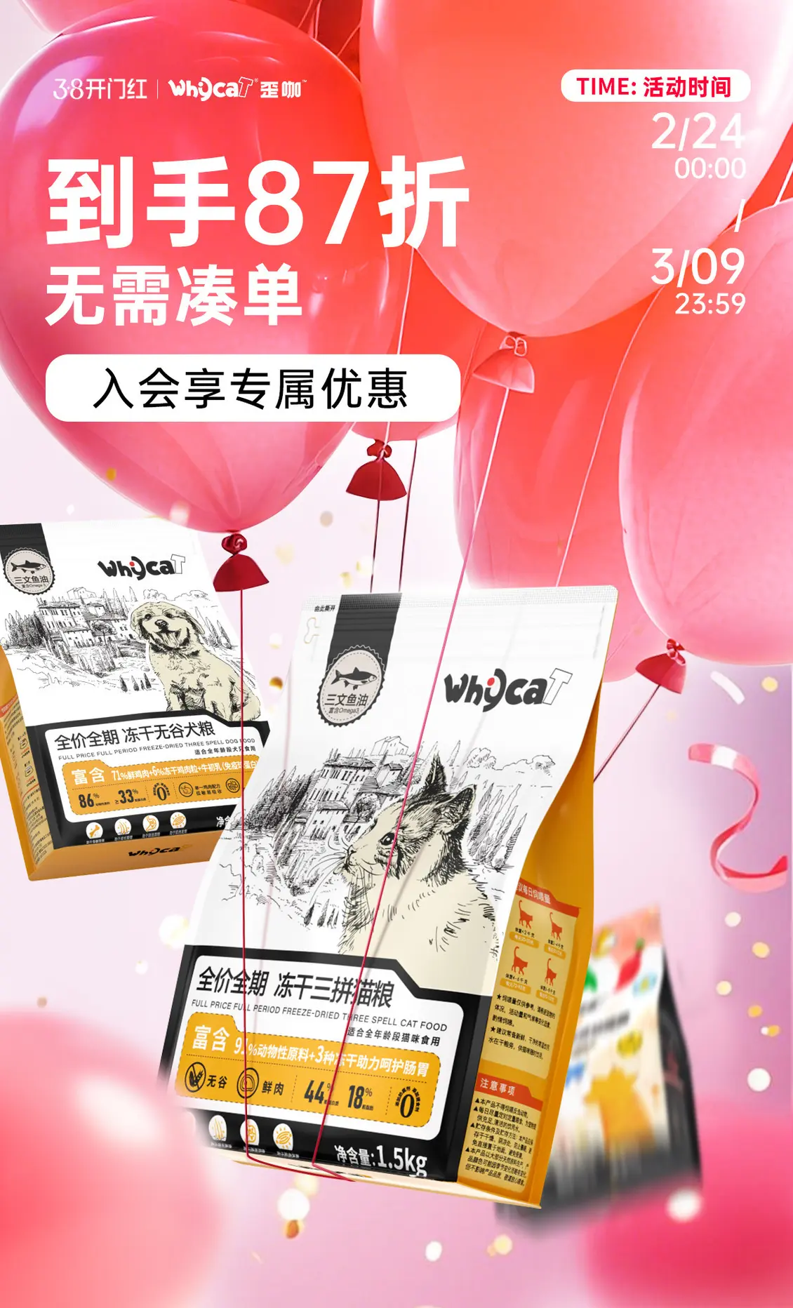 领先 宠物食品 猫粮 狗粮 38焕新周 38女王节 活动海报设计